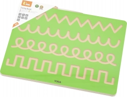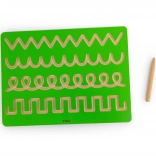 Diese kompakte Holztafel ist für das intuitive Üben von Strichen und Richtungen konzipiert, die Kinder beim Zeichnen und Schreiben nutzen. Mit dem beiliegenden Holzstylus fährt das Kind Zickzacks, Schleifen und Bögen nach und stärkt so den richtigen Griff sowie die Flüssigkeit der Bewegungen.