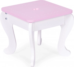 An die Kindergröße angepasst, bietet der Hocker (Höhe 26,5 cm) bequemes Sitzen bei der Anwendung von Make-up. Das Möbelstück wurde mit dem Schminktisch abgestimmt, um ein stilvolles Set zu schaffen.