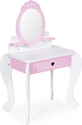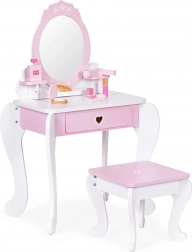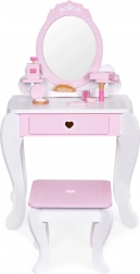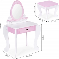 Geben Sie Ihrem Kind Raum für kreatives Spielen mit dem großen Kinderschminktisch ECOTOYS. Das Set enthält einen Tischspiegel, ein breites Regal für Kosmetik und einen an die Kindergröße angepassten Hocker. Mit weiterem Zubehör wie Spielzeugkosmetik, Föhn, Lippenstift oder luxuriösem Parfüm ist dieser Schminktisch die richtige Wahl für jede kleine Prinzessin.