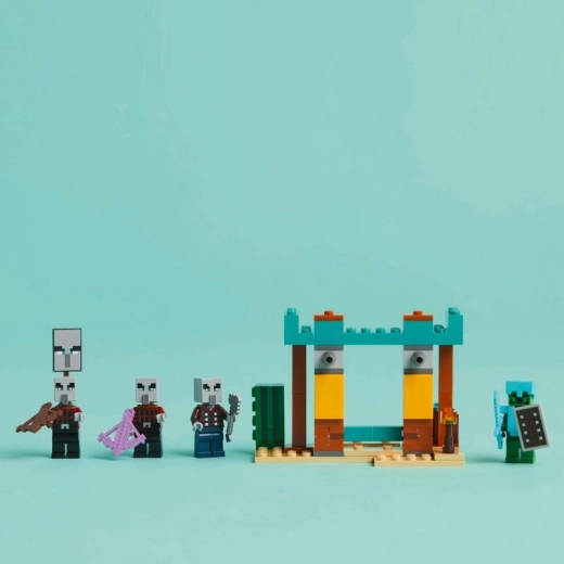 Begeben Sie sich in die trockene Wüste und verteidigen Sie den Außenposten vor drei Illagern! Werden Sie zum Kaktus-Ritter in Diamantrüstung und genießen Sie actionreiche Abenteuer mit realistischen Accessoires aus dem Spiel Minecraft. Dank der mit den Fingern abfeuerbaren Projektilen und spaßigen Details ist dieses kleinere Set eine großartige Wahl für kurze wie lange Spielsessions.