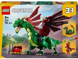 Mit dem LEGO Creator 3-in-1 Set Mittelalterlicher Drache tauchen Kinder mühelos in die Welt der Ritter, Burgen und mythischen Kreaturen ein. Das Hauptmodell ist ein detailreicher grüner Drache mit beweglichen Flügeln, Hals, Maul, Beinen und Schwanz, der sich in actionreiche Posen bringen lässt. Ebenfalls enthalten ist eine Schatztruhe für noch reichere Geschichten.