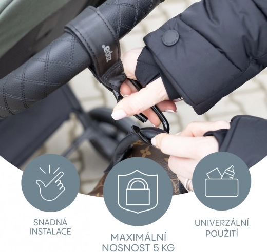Der multifunktionale Gurt mit Deluxe-Karabiner ist die ideale Lösung für Eltern und Einkäufer, die ihre Hände frei haben möchten. Durch die einfache Klettverschluss-Installation kann er einfach die Wickeltasche, Handtasche oder Einkaufstasche am Kinderwagengriff befestigen.