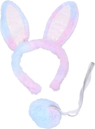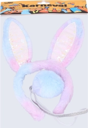 Niedliches Karneval-Set für die Verwandlung in ein glitzerndes Häschen. Ideal für Karneval, Kostümball und thematische Fotoshootings. Das Set enthält Ohren und Schwanz, die jedes Kostüm mühelos ergänzen.