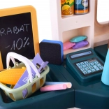 Das gesamte Set besteht aus Kunststoff in angenehmen, gedeckten Farben und umfasst 71 Zubehörteile, darunter Obst, Gemüse, Backwaren und viele weitere Artikel, was Kindern grenzenloses Spiel ermöglicht. Die Kasse hat eine Geldschublade und einen tragbaren Barcodescanner, der realistische Geräusche erzeugt – so wird das Spiel noch spannender.