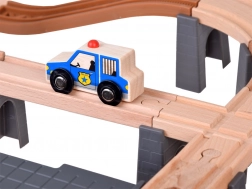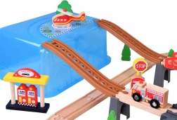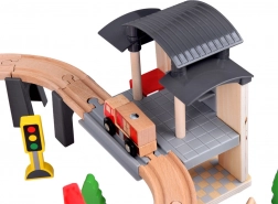 Das Netz von Gleisen umgibt die Stadt, was es Kindern ermöglicht, Routen zu planen und eigene Geschichten zu kreieren. Der bewegliche Zug kann Passagiere und Güter für realistische Spielszenen transportieren.