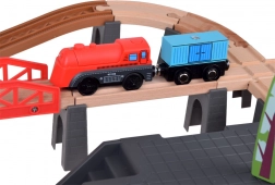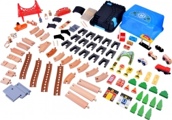 Gönnen Sie Ihren Kindern ein echtes Bauparadies mit dieser Holzeisenbahn. Das reichhaltig ausgestattete Set enthält alles, was für Stunden voller Spaß und Kreativitätsentwicklung nötig ist. Alle Elemente sind aus langlebigem Holz gefertigt, was Sicherheit und lange Lebensdauer gewährleistet. Es bietet ein einzigartiges Spielerlebnis, bei dem Kinder eigene Geschichten und Abenteuer kreieren können.