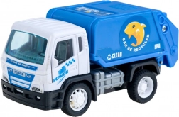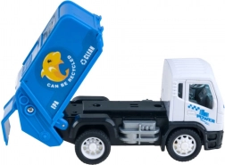Die Spielzeuge fördern das Umweltbewusstsein durch Aufkleber und Details wie 'KANN RECYCELT WERDEN' auf dem Müllwagen.