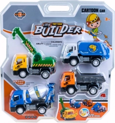Das Set besteht aus vier unterhaltsamen Fahrzeugen, die jeden Liebhaber von Bautechnik begeistern werden. Bunte und stabile Konstruktion sorgt für Sicherheit auch für die kleinsten Kinder. Dank der kleineren Abmessungen sind sie ideal für kleine Kinderhände und leicht auf Spaziergänge oder in den Kindergarten zu transportieren.