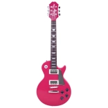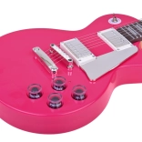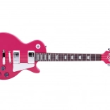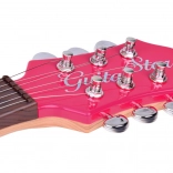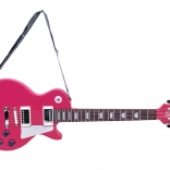 Glänzendes Finish, zwei Tonabnehmer und Bedienelemente vermitteln den Eindruck einer echten E-Gitarre – ideal für die ersten musikalischen Schritte.