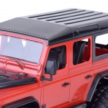 Der unterhaltsame Land Rover Defender 110 ist ein detailliert ausgearbeitetes SUV-Modell, das ideal für abenteuerliche Spiele ist. Er wird von einem voll beweglichen Fahrgestell mit weichen Gummireifen angetrieben, die jedes Gelände mühelos überwinden. Dank seines durchdachten Designs ist er mit klappbaren Akkus ausgestattet, die sich unter dem Chassis befinden.