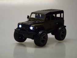 Dieses Modell ahmt den legendären Offroader Defender 110 detailgetreu nach und ist bereit für Fahrspaß drinnen wie draußen. Die Karosserie aus hochwertigem Kunststoff, weiche Gummireifen mit grobem Profil und die Federung der Hinterachse helfen, Unebenheiten sanft zu überwinden. Vordere LED-Leuchten schalten sich während der Fahrt ein und verstärken das realistische Fahrerlebnis.