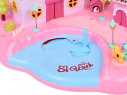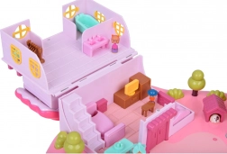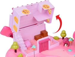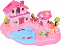 Das Häuschen bietet ein mehrstöckiges Interieur mit Szenen für den Alltag: ein gemütliches Schlafzimmer mit Bett, ein zu öffnender Schrank, ein Badezimmer mit Badewanne und Waschbecken, eine kleine Küche mit Kühlschrank sowie ein Schminktisch. Licht- und Soundeffekte, die per Tasten ausgelöst werden, verstärken die Spielatmosphäre, und die hinterleuchtete Aufschrift RABBIT reagiert im Takt der Melodie.