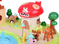 Dieses interaktive magnetische Häuschen erschafft eine bunte Spielszene mit Garten, Teich und Pilzladen. Mit dem Steuerstab auf dem blauen Teich bewegen Kinder die Figuren, die sich dank magnetischer Induktion sanft über die gesamte Szene bewegen – vom Karottenbeet über den Spielplatz bis hin zum Besuch des Haustiers. Das Pilzhaus verfügt über funktionale Tasten für Licht- und Soundeffekte sowie einen stilvollen Schriftzug „Rabbit“, der im Rhythmus aufleuchtet.