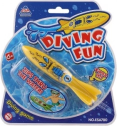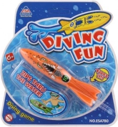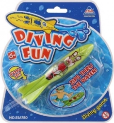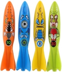 Das leichte und robuste Tauchtorpedo ist so konzipiert, dass es beim Einwerfen ins Wasser gleichmäßig absinkt und dank der leuchtenden Farben leicht zu sehen ist. Es motiviert Kinder zur Verbesserung ihrer Schwimmfähigkeiten, zum Training des Apnoe-Tauchens und der Bewegungskoordination.