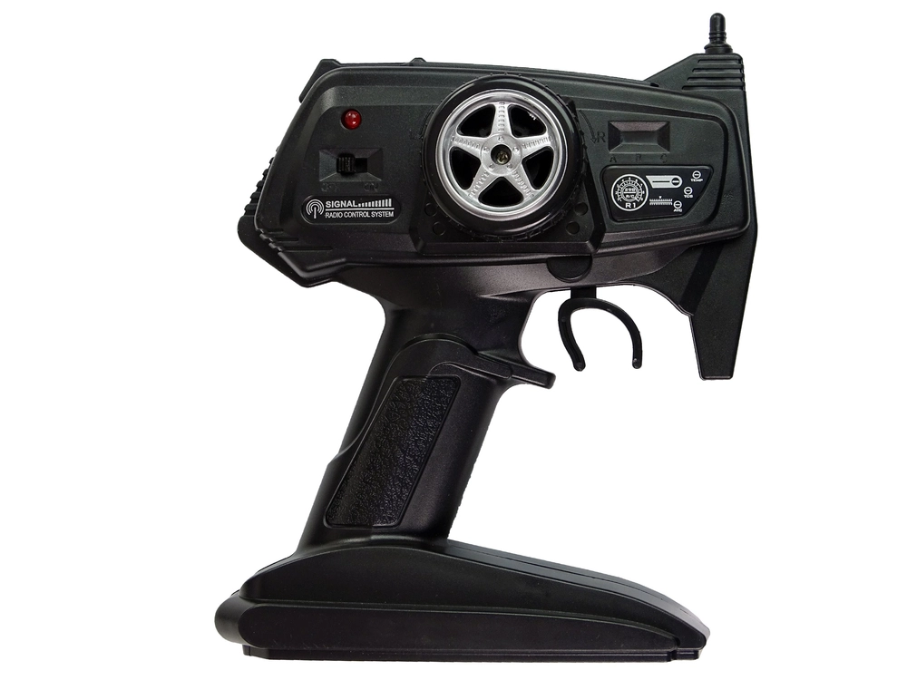 Im Lieferumfang enthalten ist ein ergonomischer Controller, der mit einer Frequenz von 2.4 GHz arbeitet und störungsfreies Fahren auch in Gruppen ermöglicht. Mit der Möglichkeit, in alle Richtungen zu lenken, entdecken Sie neue Strecken und bezwingen Neigungen bis zu 45 Grad.