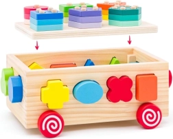 Der Holzwagen auf Rädern ist so konzipiert, dass Kinder Spaß am Lernen haben und gleichzeitig ihre motorischen Fähigkeiten verbessern können. Dieser multifunktionale Wagen ermöglicht: