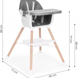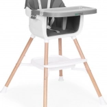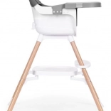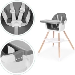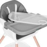 Dieser moderne Hochstuhl erleichtert das gemeinsame Essen – das Kind kann am Tisch sitzen, beobachten, nachahmen und sich richtige Gewohnheiten aneignen. Das breite Tablett dient nicht nur zum Essen, sondern auch zum Spielen, Malen oder Bauen mit Bausteinen und wird so schnell zu einem Lieblingsmöbelstück im Kinderzimmer.