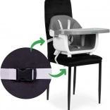 Die 2-in-1-Variante ermöglicht es, die Beine abzunehmen und den Sitz mit Gurten sicher an einem normalen Stuhl zu befestigen – ideal für unterwegs oder am Esstisch.