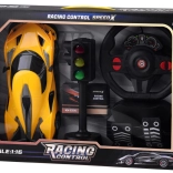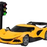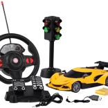 RC-Sportwagen mit Lenkrad, Pedalen und Ampel 1:16 – Gelb