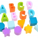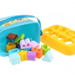 Dieses clevere Set verbindet Spiel und Lernen in einem. Kinder legen die Formen in die passenden Öffnungen im Deckel und trainieren dabei logisches Denken, Kategorisieren und visuelle Wahrnehmung. Dank der farbigen Elemente und Buchstaben eignen sie sich spielerisch Grundlagen des Alphabets und der Formerkennung an.