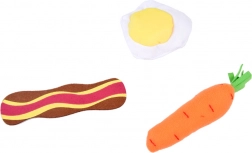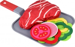 Von Steak und Fisch über Ei und Speck bis hin zu Tomate, Zwiebel, Salat, Karotte und Paprika – das Set unterstützt das Kennenlernen von Lebensmitteln und ausgewogener Ernährung spielerisch.