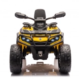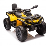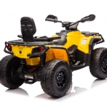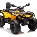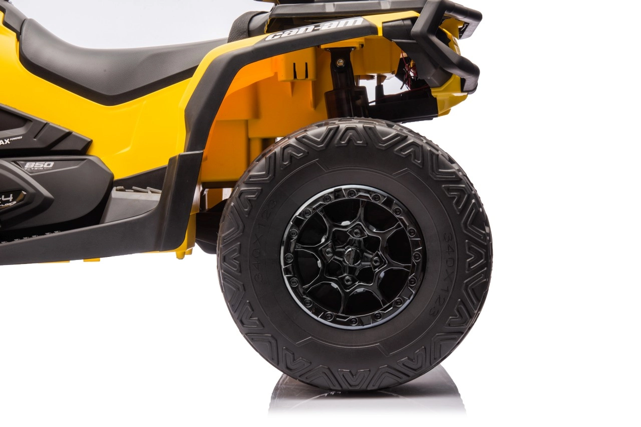 Das Can Am Outlander ATV Quad in leuchtendem Gelb ist so konzipiert, dass es ein echtes ATV realistisch nachahmt. Es ist mit großen EVA-Rädern und einer robusten Kunststoffkonstruktion ausgestattet, die Langlebigkeit beim Spielen im Freien gewährleistet. Zudem verfügt es über Räder mit variablem Antrieb auf 2 oder 4 Räder, die sich einfach per Knopfdruck umschalten lassen.