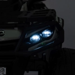 Das Design des Quads umfasst EVA-Schaumstoffräder, die robust sind und hervorragende Traktion bieten. Das Fahrzeug ist mit LED-Leuchten ausgestattet, um auch bei schlechten Lichtverhältnissen hervorragende Sichtbarkeit zu gewährleisten. Die musikalischen Möglichkeiten werden durch ein Panel mit MP3, FM-Radio, Bluetooth und USB sichergestellt, das es Kindern ermöglicht, mit ihrer Lieblingsmusik begleitet zu fahren.