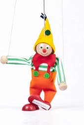 Narr Jarmil in bunter Kleidung mit typischer Mütze ist eine entzückende hölzerne Marionette, die Kinder mithilfe der Führungsfäden leicht in Bewegung bringen. Dank der hochwertigen Handarbeit aus einer geschützten Werkstatt ist jede Puppe ein Unikat und kann sich in farblichen Details geringfügig unterscheiden.