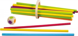 Ihr würfelt mit einem Würfel mit farbigen Punkten und zieht das Stäbchen der entsprechenden Farbe. Schnell zu verstehen, flüssiger Spielablauf und keine langwierige Vorbereitung.