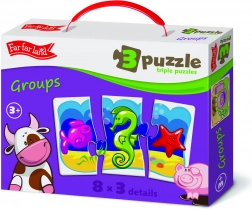 Die Far Far Land Puzzle Trio-Sets bieten eine wunderbare Welt voller bunter Bilder. Jedes Set enthält 8 einzigartige Bilder, die aus 3 Teilen bestehen. Diese Puzzle fördern nicht nur die Kreativität der Kinder, sondern auch ihre Fähigkeit, verschiedene Objekte zu verbinden und zu unterscheiden.