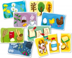 Far Far Land Puzzle-Trio bietet eine unterhaltsame und lehrreiche Aktivität für Kinder. Jede Packung enthält 8 einzigartige Puzzlebilder, bestehend aus drei Teilen, die Gegenstände zeigen, die zu einem Set gehören.