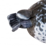Der Seehund ist mit einer realistischen grauen und weißen Textur gestaltet, die das echte Aussehen eines Seehunds nachahmt. Aufgrund der detailreichen Verarbeitung und der hochwertigen Materialien wirkt das Plüschspielzeug sehr authentisch.