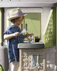 Diese Sommerküche ist die perfekte Ergänzung zu den Spielhäusern Neo Jura Lodge, Pretty, Nature, My Neo House, Neo Friends House, Chef, Boss House, My New House, Green Jura Lodge und Green Evo Friends House. Die Küche besteht aus einem Grill und einem Waschbecken mit Wasserhahn.