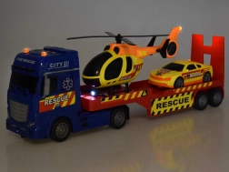 Lassen Sie Ihre Kinder in die aufregende Welt der Rettungseinsätze mit diesem außergewöhnlichen Set eintauchen! Der Spaß umfasst ein realistisches Szenario mit Fahrzeugen wie einem Lkw mit abnehmbarer Plattform, einem Hubschrauber und einem Auto.