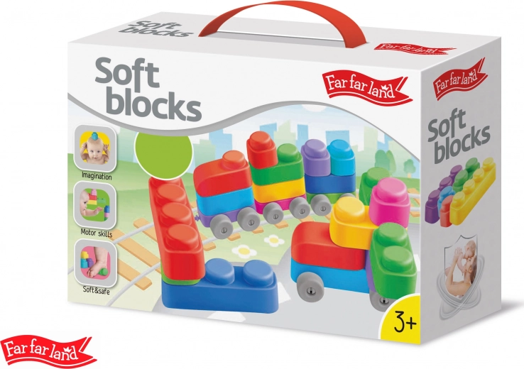 Bausatz Far Far Land ist ein unterhaltsames und kreatives Spielzeug für Kinder! Enthält 21 weiche Blöcke und 16 Räder, die die motorische Entwicklung und Fantasie Ihrer Kinder fördern.