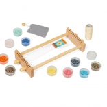 Dieser Perlenwebstuhl für Kinder von Bigjigs Toys ist die perfekte Wahl für die Entwicklung von Kreativität und Feinmotorik. Der Webstuhl wird mit allem Notwendigen geliefert, einschließlich Nadeln, Filznadelkissen, Stickgarn und 12 farbigen Perlen.