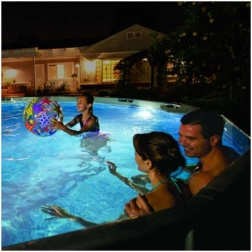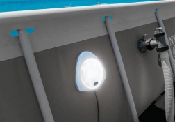 Die Leuchte ist mit den meisten Aufstell- und Faltpools kompatibel und deckt mit ihrer Leistung Längen von bis zu 7,32 m ab. Robuste und wasserdichte Konstruktion, mehrere Farbmodi sowie einfache Bedienung machen sie zum idealen Zubehör für sicheres und stilvolles Baden am Abend.