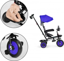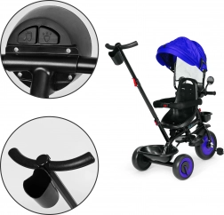 Das 3-in-1-System ermöglicht das schrittweise Entfernen von Verdeck, Schutzbügeln und Elternschiebestange – vom Modus „Dreirad mit Führung“ bis zum selbstständigen klassischen Dreirad. Zur praktischen Ausstattung gehören ein interaktives Licht mit 4 Melodien und farbiger Beleuchtung, ein Getränkehalter und 2 Aufbewahrungskörbe für alles Nötige auf Spaziergängen.