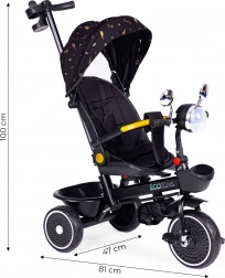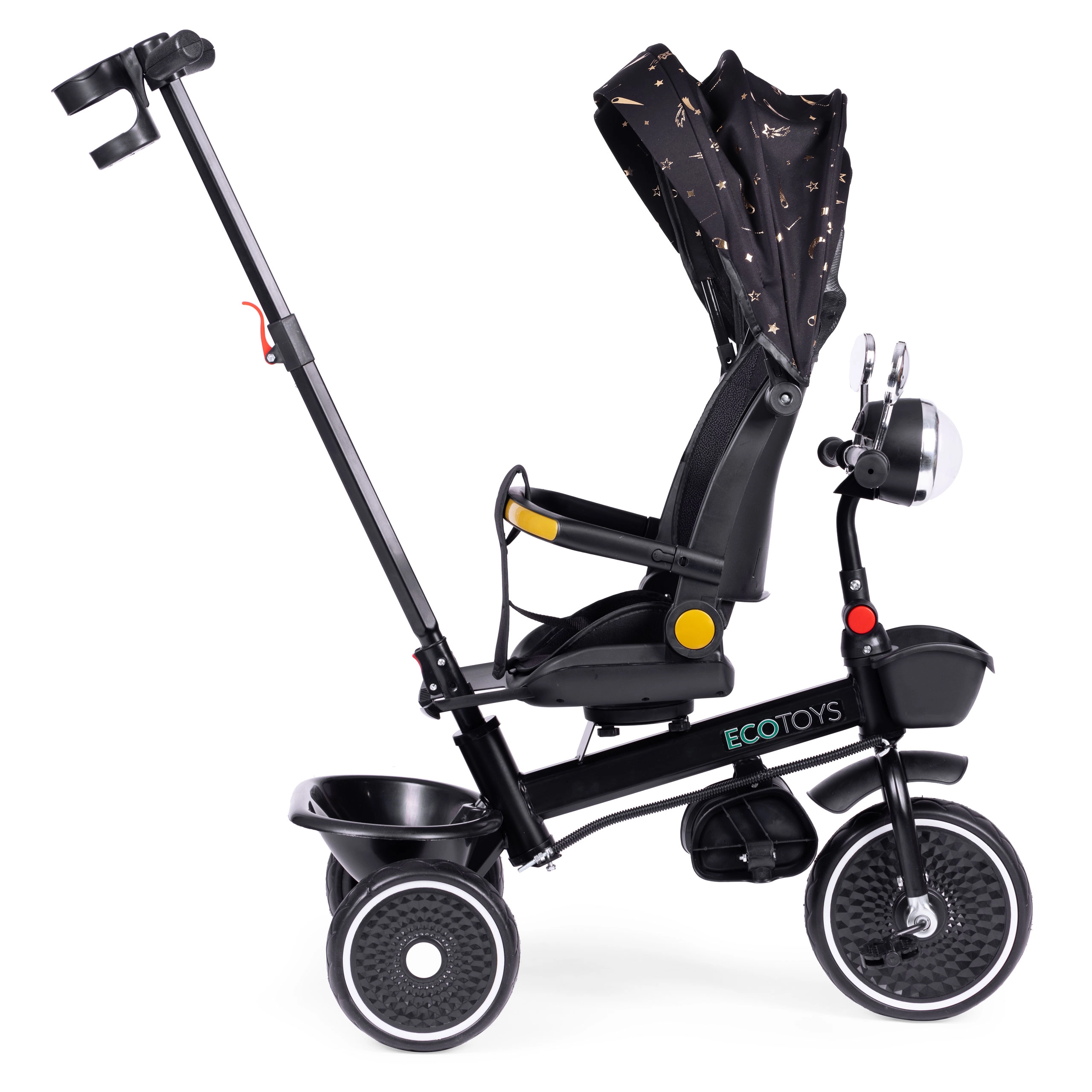 Dieses clevere Dreirad vereint Kinderwagen und Laufrad in einem. Der drehbare Sitz ermöglicht die Fahrt zur Bezugsperson oder in Fahrtrichtung, die verstellbare Rückenlehne und das klappbare Verdeck mit Belüftungsnetz schützen und erhöhen den Komfort. Die elterliche Lenkung dreht den Lenker direkt – so haben Sie Richtung und Tempo unter Kontrolle.