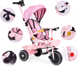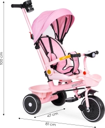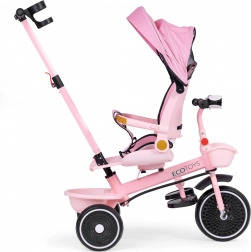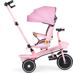 Suchen Sie Kinderwagen und Dreirad in einem? Dieses multifunktionale 2-in-1 Dreirad vereint den Komfort eines Kinderwagens mit der Freude am ersten Treten. Dank des drehbaren Sitzes können Sie Ihr Kind sowohl zur Bezugsperson gewandt als auch in Fahrtrichtung fahren lassen, während das verstellbare Verdeck vor Sonne und Wind schützt. Die Stahlkonstruktion und die EVA-Räder sorgen für Stabilität und eine sanfte Fahrt auf unterschiedlichen Untergründen.