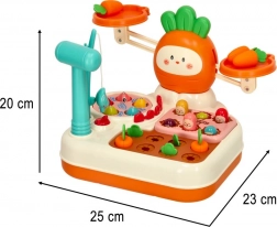 Zur Ausstattung gehören ein Hammer und eine Angelrute, die Kindern helfen, Feinmotorik und Koordination zu entwickeln.