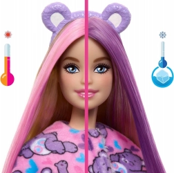 Kalten Wasser zaubert in das Haar der Puppe eine farbige Strähne, warmes Wasser bringt den ursprünglichen Ton zurück. Der Effekt ist wiederholbar und sicher für Kinderspiele.