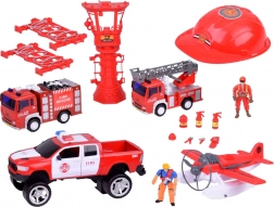 Großes Set Feuerwehrfahrzeuge mit Helm