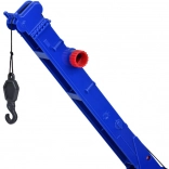 Das Auto ist mit einem Ausleger mit Seil und Haken ausgestattet, der das Heben von Gegenständen ermöglicht, sowie mit einem drehbaren Kranhäuschen für flexible Handhabung.