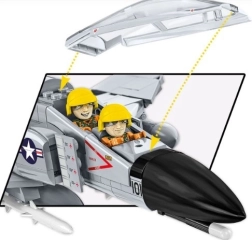 Modell F-4 Phantom II ist ein Überschall-Mehrzweckjäger, der seit den 60er Jahren in der US-Luftwaffe im Einsatz war. Es wurde in Abfang-, Bomben- und Aufklärungsmissionen eingesetzt, zum Beispiel während des Vietnamkriegs. Das Modell aus 703 COBI-Bauteilen repliziert das Flugzeug auf dem Flugzeugträger USS Midway, das in San Diego (USA) besichtigt werden kann. Dank der lizenzierten Fertigung ist das Modell detailgetreu nach dem echten Flugzeug mit beweglichen Klappen und abnehmbarem Fahrwerk sowie Bewaffnung gestaltet. Das Cockpit ist öffnbar und bietet Platz für symbolische Piloten-Miniaturen. Das Set enthält auch eine Basis zum Ausstellen und eine Tafel mit Namen und Maßstab des Flugzeugs 1:48.