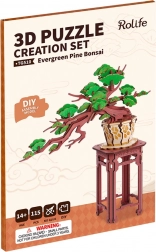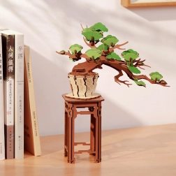 Dieser detailreich gestaltete Bonsai auf einem eleganten Ständer mit einer Struktur wie aufgerissene Erde beeindruckt durch verschlungene Zweige und strukturierte Blätter, die Kraft und Ausdauer immergrüner Bäume verkörpern. Das Zusammenbauen fördert Feinmotorik, räumliches Denken und Geduld – perfekt für Entspannung und Fähigkeitsentwicklung.