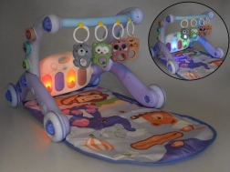 Sicherheit und Komfort stehen an erster Stelle: breite Spur der Räder mit Gummileiste für leiseres und sichereres Fahren, abgerundete Formen ohne scharfe Kanten und einfache Montage ohne Werkzeug. Das Klavier kann auch separat im Bettchen oder Kinderwagen verwendet werden – so ist für Unterhaltung zu Hause und unterwegs gesorgt.