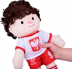 Diese superweiche Fußballer‑Puppe in den Farben Polens wird sofort zum Lieblingsfreund kleiner Spieler und Fans. Das stylische Trikot mit Adler auf der Brust und der Nummer „9“, die Sportschühchen und die braunen Haare verleihen der Puppe einen authentischen Look. Ideal für Rollenspiele, fördert die Fantasie und die Feinmotorik.