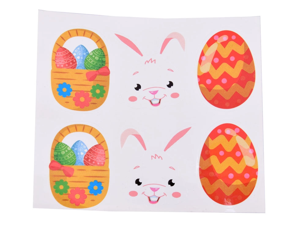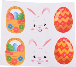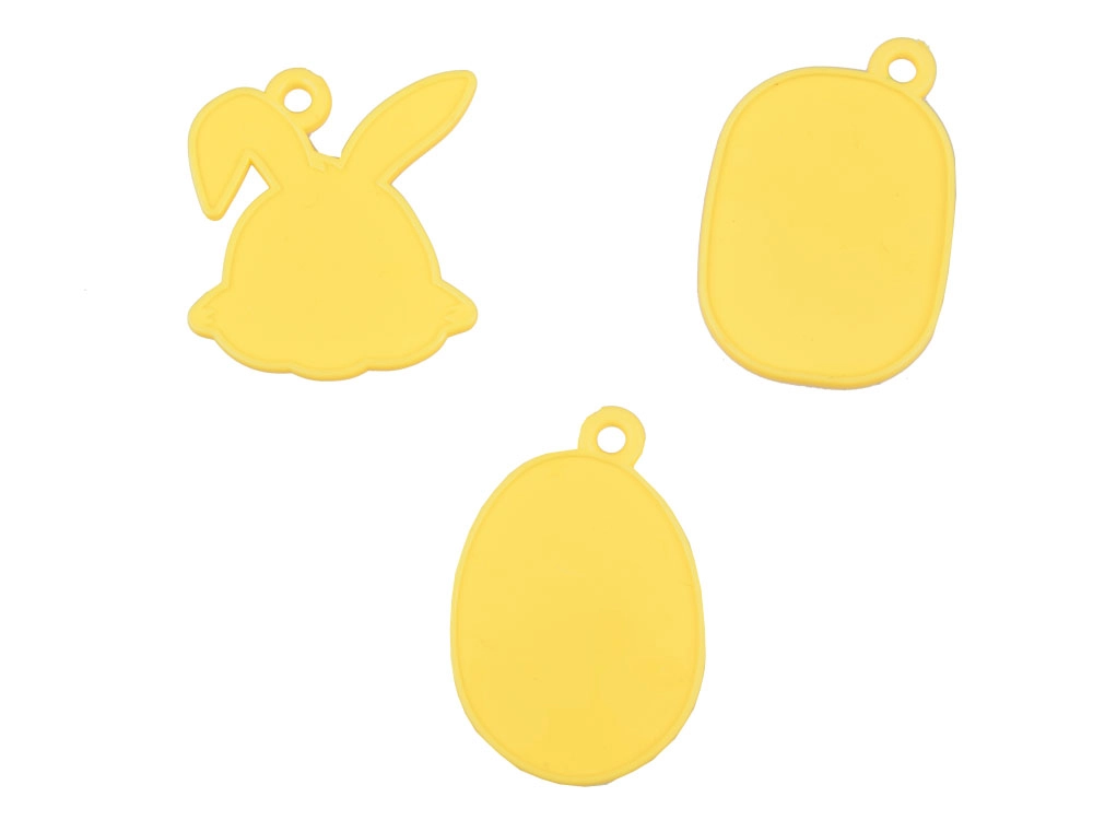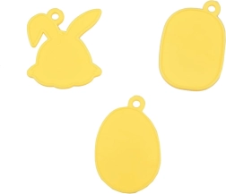 Drei beidseitige Anhänger mit Ostermotiven lassen sich leicht mit Aufklebern verzieren – ideal als kleine Aufmerksamkeiten für Familie und Freunde.