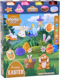 Dieses bunte Kreativ-Set liefert Kindern alles, was sie für niedliche Osterdeko brauchen. Dank 4 Bechern Knete und cleveren Deckeln, die als Tierförmchen dienen, entstehen im Handumdrehen Häschen, Küken und verzierte Ostereier. Die große Ei-Form bietet eine breite Auswahl an Motiven (Häschen, Möhre, Eier, Küken, Körbchen) und wird durch zwei weitere Formen mit Blättern, Blüten, Wölkchen und Süßigkeiten ergänzt.